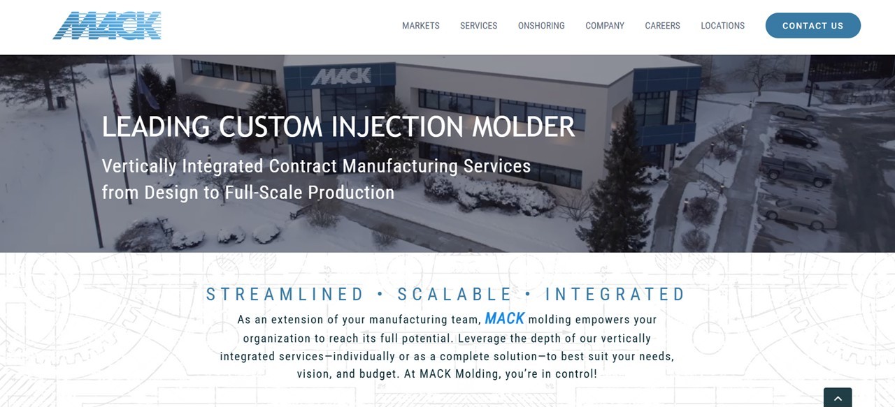 Mack Molding streamlines the manufacturing process from design to fulfillment with a client-first approach and a suite of vertically integrated services under one roof. Choose individual solutions or a fully integrated approach for cost savings, reduced lead times, scalable production, and consistent quality.