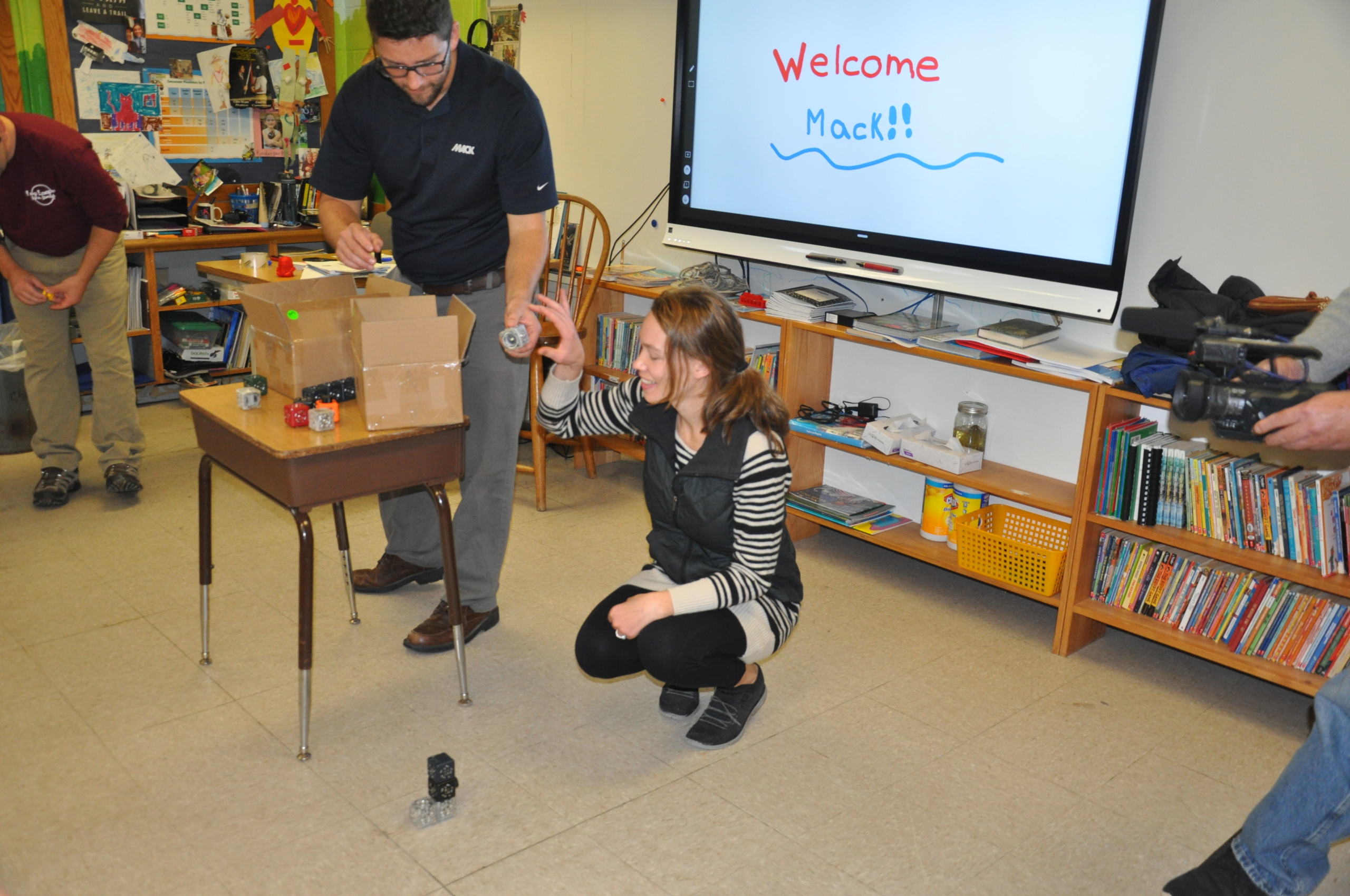 Mack Molding engineers Ann Wedell and Scott Rishell recently visited Cummings’ classroom with Mack Group Chief Financial Officer Florence Belnap to join students in opening the classroom’s newest teaching tools, called Cubelets. Cummings’ class raised money, including $1,796 from Mack, through DonorsChoose, which allows individuals to donate directly to public school classroom projects. While visiting Wedell and Rishell also discussed what they do at the leading custom plastics molder and supplier of contract manufacturing services, as well as how their love of science, engineering and learning helped shape who they are today.